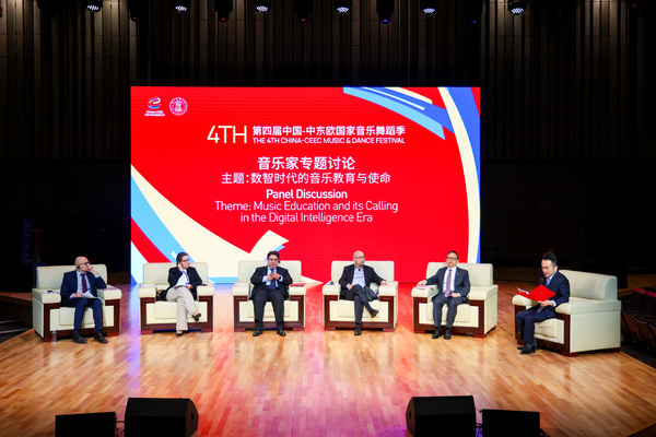当天下午,本届音乐舞蹈季的重要板块——音乐家专题讨论举办。讨论会聚焦“数智时代的音乐教育与使命”主题,王瑞教授与来自克罗地亚、匈牙利、黑山、波兰、北马其顿、葡萄牙、塞尔维亚等多国的音乐教育家齐聚一堂,展开了一场兼具思想性与创新性的对话。他们结合各自国家的艺术教育实践,深入探讨了数智技术对音乐教学模式带来的变革,并就文化传承的数字化路径交换了见解。大家积极回应全球艺术教育的发展趋势,为跨文化对话与国际合作提供了创新思路与实践方向。
